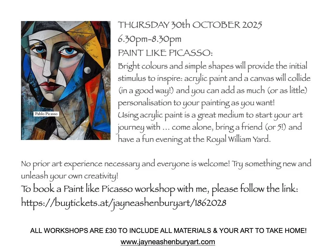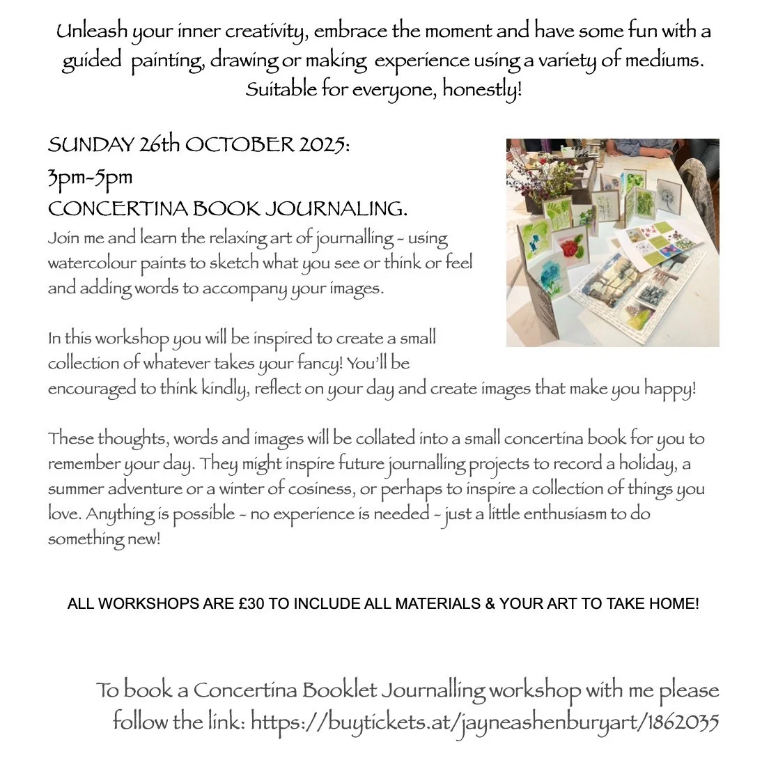 Book your tickets through Ticket Tailor - the links for each workshop page is below: https://buytickets.at/jayneashenburyart/